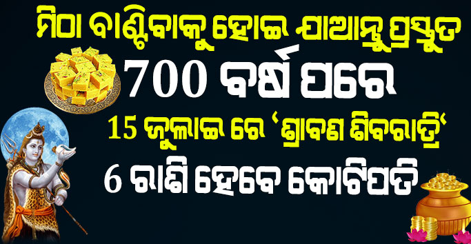 ମିଠା ବାଣ୍ଟିବାକୁ ହୋଇ ଯାଆନ୍ତୁ ପ୍ରସ୍ତୁତ 700 ବର୍ଷ ପରେ ଜୁଲାଇ 15 ରେ ଶ୍ରାବଣ ଶିବରାତ୍ରି 6ଟି ରାଶି ହେବେ କୋଟିପତି ।