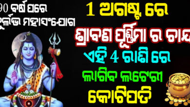 ବନ୍ଧୁଗଣ ଦୀର୍ଘ 90 ବର୍ଷ ପରେ ଅଗଷ୍ଟ 1 ରେ ପଡିବାକୁ ଯାଉଛି ଶ୍ରାବଣ ପୂର୍ଣ୍ଣିମା । ଏହି ଦିନ ଗ୍ରହରେ ବନିବାକୁ ଯାଉଛି ଦୁର୍ଲଭ ମହା…