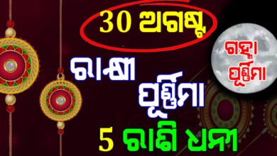 ଚଳିତ ମାସ ୩୦ ତାରିଖରେ ପବିତ୍ର ଗହ୍ମା ପୂର୍ଣ୍ଣିମା ବା ରାକ୍ଷୀ ପୂର୍ଣ୍ଣିମା ପଡିବା ପାଇଁ ଯାଉଛି । ଏହି ପବିତ୍ର ତିଥିରେ କିଛି ରାଶିର ବ୍ୟକ୍ତିବିଶେଷଙ୍କ…