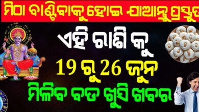 ମିଠା ବାଣ୍ଟିବାକୁ ହୋଇ ଯାଆନ୍ତୁ ପ୍ରସ୍ତୁତ କାରଣ 19 ଜୁନ ରୁ 26 ଜୁନ ଯାଏଁ ଏହି ରାଶିକୁ ମିଳିବ ବଡ ଖୁସି ଖବର ।