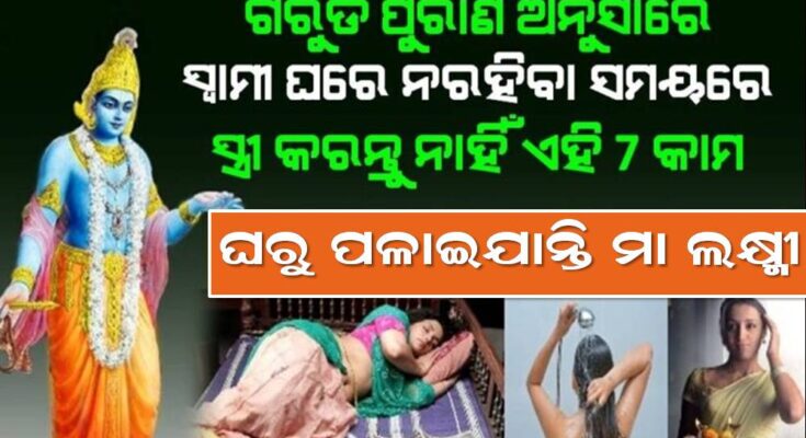 ମାତା ଲକ୍ଷ୍ମୀ ଅସତୀ ସ୍ତ୍ରୀଙ୍କ ପାଖକୁ କେବେ ଯାଆନ୍ତି ନାହିଁ ଏବଂ ସେହି ଘରର ତ୍ୟାଗ କରି ସବୁଦିନ ପାଇଁ ପାଇଁ ଚାଲି ଯାଆନ୍ତି । ଗରୁଡ଼ ପୁରାଣରେ ପତିବ୍ରତା ସ୍ତ୍ରୀ ମାନଙ୍କ ପାଇଁ ଜରୁରୀ ଉପଦେଶ ଦିଆଯାଇଛି । ତେଣୁ ଆଜିକାର ଏହି ଲେଖାରେ ଆମେ ଆପଣଙ୍କୁ କହିବୁ ଯେ ସ୍ୱାମୀ ଘରେ ନଥିଲେ ସ୍ତ୍ରୀ କୁ କେଉଁ କାମ ଆଦୋୖ କରିବା ଉଚିତ ନୁହେଁ । ଯେଉଁ ସ୍ତ୍ରୀ ଏହିସବୁ ନିୟମର ପାଳନ କରିଥାଏ ସେହି ବ୍ୟକ୍ତିର ଜୀବନରେ ସର୍ବଦା ସୁଖ ଶାନ୍ତି ବଜାୟ ରହିଥାଏ