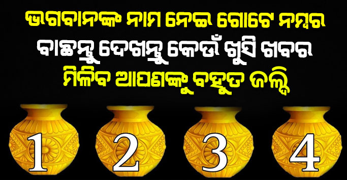 ବନ୍ଧୁଗଣ ପରିବର୍ତ୍ତନ ମଣିଷ ଜୀବନରେ ଆସିବା ସ୍ଵାଭାବିକ କଥା । 2024 ବର୍ଷ ଅନେକ ପରିବର୍ତ୍ତନ ନେଇକି ଆସିବ । ଏଥିପାଇଁ ଆପଣଙ୍କୁ 4ଟି ନମ୍ବର ମଧ୍ୟରୁ କୌଣସି ଗୋଟେ ବାଛିବାକୁ ହେବ । ଏଥିପାଇଁ ଆପଣଙ୍କୁ ମାତ୍ର 3 ସେକେଣ୍ଡର ସମୟ ଦିଆଯିବ । ତେବେ ବାଛନ୍ତୁ କୌଣସି ଏକ ନମ୍ବର ଓ ଜାଣନ୍ତୁ ଆପଣଙ୍କୁ ବହୁତ ଜଲ୍ଦି କେଉଁ ଖୁସି ଖବର ମିଳିବାକୁ ଯାଉଛି ।