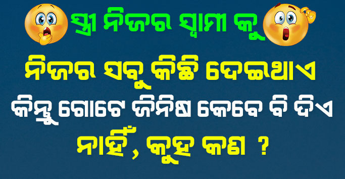15+ GK Quiz- ସ୍ତ୍ରୀ ନିଜର ସ୍ଵାମୀ କୁ ନିଜର ସବୁ କିଛି ଦେଇଥାଏ କିନ୍ତୁ ଗୋଟେ ଜିନିଷ କେବେ ବି ଦିଏ ନାହିଁ , କୁହ କଣ ?