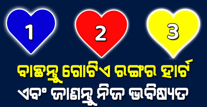 ତେବେ ଏହି ଟେଷ୍ଟ ରେ ଆମେ ଆପଣଙ୍କୁ ତନୋଟି ଚିତ୍ର ଦେଖାଇବୁ । ତା ମଧ୍ୟରୁ ଆପଣ କୌଣସି ଏକ ଚିତ୍ର କୁ ବାଛିବେ । ଏହା ପରେ ଆମେ ସେହି ସଙ୍କେତ ରୁ ଆପଣଙ୍କର ବ୍ୟକ୍ତିତ୍ୱ ବିଷୟରେ କହିବୁ। ତେବେ ସେହି ତିନୋଟି ଚିତ୍ର ହେଉଛି ନୀଳ ହାର୍ଟ, ରେଡ ହାର୍ଟ ଏବଂ ହଳଦିଆ ହାର୍ଟ  । ତେବେ ଏହି ତିନୋଟି ହୃଦୟ ମଧ୍ୟରୁ କୌଣସି ଗୋଟିଏ ହୃଦୟ ପସନ୍ଦ କରନ୍ତୁ ଏବଂ ନିଜ ବିଷୟରେ କିଛି ଖାସ କଥା କହିବୁ। ତେବେ ଚାଲନ୍ତୁ ଆରମ୍ଭ କରିବା ।