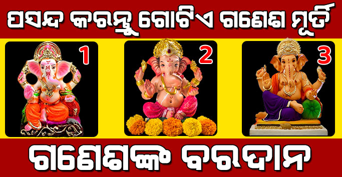 ବନ୍ଧୁଗଣ ପ୍ରତେକ ବ୍ୟକ୍ତିର ନାମ, ଜନ୍ମସ୍ଥାନ, ରାଶି,ନକ୍ଷତ୍ର ପରସ୍ପର ଠାରୁ ଅଲଗା ହୋଇଥାଏ । ସେହି ପରି ବ୍ୟକ୍ତିର ପସନ୍ଦ ଏବଂ ନାପସନ୍ଦ ମଧ୍ୟ ଭିନ୍ନ ଭିନ୍ନ ହୋଇଥାଏ । ଜ୍ୟୋତିଷ ଶାସ୍ତ୍ର ଅନୁସାରେ ବ୍ୟକ୍ତିର ପସନ୍ଦରୁ ତାର ଭବିଷ୍ୟତ, ବ୍ୟକ୍ତିତ୍ଵ ବିଷୟରେ ବହୁତ କିଛି ଜାଣି ହେବ । ଆଜି ଆମେ ଆପଣଙ୍କୁ ଆପଣଙ୍କ ଭବିଷ୍ୟତ ବିଷୟରେ କହିବୁ । ତେବେ ବନ୍ଧୁଗଣ ପ୍ରଥମ ଆପଣ ଦେଖାଇଥିବା ତିନୋଟି ଗଣେଶ ମୂର୍ତ୍ତି ଗୁଡିକ ମଧ୍ୟରୁ ନିଜର ପ୍ରଥମ ନଜରରେ ହିଁ ଗୋଟେ ମୂର୍ତ୍ତି ପସନ୍ଦ କରନ୍ତୁ ଏବଂ ନିଜର ଆଗାମୀ ଭବିଷ୍ୟତ ବିଷୟରେ ଜଣାନ୍ତୁ । ତେବେ ଚାଲନ୍ତୁ ଆରମ୍ଭ କରିବା ।