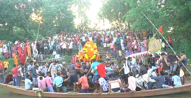 ଠାକୁର ଭାର୍ଗବୀ ନଦୀ କୂଳରେ ପହଞ୍ଚିବା ପରେ ଠାକୁରଙ୍କ ବାଟକୁ ଚାହିଁ ରହିଥାନ୍ତି ଅନେକ ଶ୍ରଦ୍ଧାଳୁ । ଦୁଇଟି ଗାଁର ଠାକୁର ଭାଗର୍ବୀ ନଦୀରେ ଡଙ୍ଗା ସାହାଯ୍ୟରେ ଚାପ ଖେଳି ଖେଳି ଆସିଥାନ୍ତି । ନଦୀ ମଧ୍ୟରେ ଭଉଁରୀ ଖେଳିଥାନ୍ତି । ଏହି ସମୟରେ ଠାକୁରଙ୍କ ପାଖରେ ଗୋଟିପୁଅ ନୃତ୍ୟ ପରିବେଷଣ କରାଯାଇଥାଏ । ଘଣ୍ଟୁଆଙ୍କ ଘଣ୍ଟ ମର୍ଦ୍ଦଳ ସାଙ୍ଗକୁ ତୁରୀର ସ୍ବନରେ ସୃଷ୍ଟି ହୋଇଥାଏ ଏକ ଆଧ୍ୟାତ୍ମିକ ପରିବେଶ  । ଛୋଟ ବଡ଼, ଉଚ୍ଚ ନୀଚ୍ଚ ଭେଦ ଭାବ ଭୁଲି ସମସ୍ତେ ଏକତ୍ରିତ ହୋଇଥିଲେ ଠାକୁରଙ୍କ ଏହି ଉତ୍ସବରେ । ବିଶେଷ କରି ମହିଳାଙ୍କ ସଂଖ୍ୟା ଅଧିକ ହୋଇଥାଏ । ତେବେ ଏହି ଅପୁର୍ବ ଦୃଶ୍ୟ ଦେଖିବା ପାଇଁ କାହିଁ କେତେ ଦୂରରୁ ଶ୍ରଦ୍ଧାଳୁଙ୍କର ସୁଅ ଛୁଟିଥାଏ ।