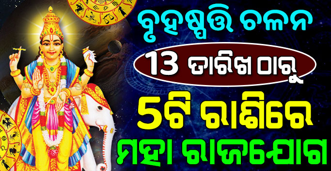 ବନ୍ଧୁଗଣ ନମସ୍କାର ଆପଣ ମାନେ ଯଦି ଜ୍ୟୋତିଷ ଶାସ୍ତ୍ର ଉପରେ ବିଶ୍ୱାସ କରୁଥିବେ ତେବେ ଆପଣ ମାନେ ନିଶ୍ଚିତ ଭାବରେ ଜାଣିଥିବେ ଯେ, ଗ୍ରହର ଚଳନ ରେ ବିଭିନ୍ନ ପ୍ରକାର ପରିବର୍ତ୍ତନ ଦେଖିବାକୁ ମିଳିଥାଏ ଏବଂ ଏହି ପରିବର୍ତ୍ତନ ବ୍ୟକ୍ତି ର ରାଶି ମାଧ୍ୟମରେ ବ୍ୟକ୍ତି ଜୀବନ ରେ ପ୍ରଭାବ ପକାଇଥାଏ । ତେବେ ଆସନ୍ତା ୧୪ ତାରିଖ ରେ ଗ୍ରହ ମାନଙ୍କ ସ୍ଥିତି ରେ ପରିବର୍ତ୍ତନ ହେବାକୁ ଯାଉଛି । ବୃହସ୍ପତି ଚଳନ ରେ ପରିବର୍ତ୍ତନ କାରଣରୁ ୧୨ ଟି ରାଶି ମଧ୍ୟରୁ ୫ ଟି ରାଶି ଉପରେ ଏହାର ପ୍ରଭାବ ପଡ଼ିବାକୁ ଯାଉଛି ଏବଂ ହେବାକୁ ଯାଉଛି ରାଜଯୋଗ ।