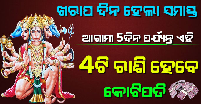ବନ୍ଧୁଗଣ ବଜରଙ୍ଗବଲି ହନୁମାନ ଙ୍କ କୃପାରୁ ଆଗାମୀ ୫ଦିନ ପର୍ଯ୍ୟନ୍ତ ଏହି ରାଶି ମାନଙ୍କ ଜୀବନରେ ଭଲ ପରିବର୍ତ୍ତନ ଘଟିବାକୁ ଯାଉଛି । ଯାହା ଫଳରେ ଏମାନଙ୍କୁ ଅଚାନକ ଧନ ପ୍ରାପ୍ତି ହେବା ସହ ସମାଜରେ ମାନ ସମ୍ମାନ ମଧ୍ୟ ମିଳିବ । ଜ୍ୟୋତିଷ ଶାସ୍ତ୍ର ଅନୁସାରେ ମଣିଷ ମାନଙ୍କ ଜୀବନରେ ରାଶି ମାନଙ୍କର ବହୁତ ଅଧିକ ମହତ୍ତ୍ଵ ରହିଥାଏ । ରାଶି ମାନଙ୍କ ଦ୍ଵାରା ଆମେ ବ୍ୟକ୍ତିର ଭବିଷ୍ୟତ ବିଷୟରେ ଜାଣିପାରିଥାଉ ।