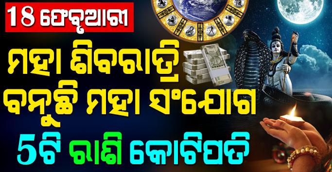 ଭଗବାନ ଶଙ୍କର ଙ୍କୁ ଭୋଳାନାଥ, କୃପାଳୁ, ଦୟାଳୁ ଓ ଦେବଙ୍କ ଦେବ ମହାଦେବ କୁହାଯାଏ । ଭଗବାନ ଶିବଙ୍କ ପୂଜା ଦେବତା, ଅସୁର, ଦୈତ୍ୟ, ଦାନବ, ମାନବ ସମସ୍ତେ କରିଥାନ୍ତି । ମହାଦେବ ଖୁବ ଜଲ୍ଦି ପ୍ରସନ୍ନ ହୋଇଥାନ୍ତି । ପବିତ୍ର ଶିବରାତ୍ରିର ବିଶେଷ ମହତ୍ଵ ରହିଛି ଆମ ହିନ୍ଦୁ ଧର୍ମରେ । ଏହି ଦିନ ବ୍ରତ କରୁଥିବା ଜାତକଙ୍କୁ ଶୟନ କରିବା ଅନୁଚିତ । ଏହି ଦିନ ଉଜାଗର ରହିବା ଉଚିତ । ଚଳିତ ବର୍ଷ ଫେବୃଆରୀ 18 ଶନିବାର ଦିନ (ଆଜି)ପଡୁଛି ଶିବରାତ୍ରି ପର୍ବ । ଶିବରାତ୍ରି ଦିନ ବନୁଛି ବିରଳ ମହା ସଂଯୋଗ । ଯାହା କାରଣରୁ କିଛି ରାଶି ହେବାକୁ ଯାଉଛନ୍ତି ଅତ୍ୟନ୍ତ ଶୁଭ । ଆସନ୍ତୁ ଜାଣିବା ବିସ୍ତାର ଭାବେ ।