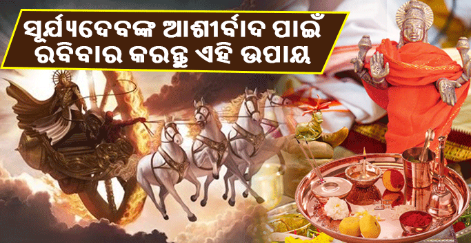 ପ୍ରତିଦିନ ସକାଳେ ସୂର୍ଯ୍ୟଦେବଙ୍କ ପୂଜା କରି ତାଙ୍କ ଆଶୀର୍ବାଦ ନବା ଶୁଭ ବୋଲି ମାନ୍ୟତା ଅଟେ କିନ୍ତୁ ରବିବାର ଦିନ ସୂର୍ଯ୍ୟଦେବଙ୍କ ପୂଜା ଓ ଉପାୟ ଆପଣଙ୍କୁ ସୌଭାଗ୍ୟ ପ୍ରାପ୍ତ କରେଇଥାଏ । ମାନ୍ୟତା ଅନୁଯାଇ ଯଦି ସୂର୍ଯ୍ୟ ଦେବଙ୍କ କିଛି ଉପାୟ କରା ଯାଏ ତେବେ ଏହା ଦ୍ଵାରା ଲାଭ ପ୍ରାପ୍ତ ହୋଇଥାଏ, ସୂର୍ଯ୍ୟ ଦେବ ଚାକିରିରେ ଉଚ୍ଚ ପଦ ଓ ପ୍ରତିଷ୍ଠା ପ୍ରାପ୍ତ କରିବା ପାଇଁ ଆଶୀର୍ବାଦ ଦେଇଥାନ୍ତି ।