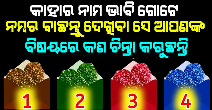 ହେଲୋ ସାଙ୍ଗ ଏମାନେ କେମିତି ଅଛନ୍ତି ଆପଣ ମାନେ । ଆଶା କରୁଛୁ ବହୁତ ମସ୍ତ ରେ ଥିବେ । ଆପଣଙ୍କ ବହୁତ ଧ୍ୟାନରେ 4ଟି ନମ୍ବର ମଧ୍ୟରୁ ଯେ କୌଣସି ଗୋଟେ ବାଛନ୍ତୁ । ଆପଣଙ୍କ ପାଇଁ ତାଙ୍କ ମନରେ କଣ ଚାଲିଛି ତାହା ରହିଛି ଆଜିର ବିଷୟ ବସ୍ତୁ । ସେ ଆପଣଙ୍କ ଜୀବନ ସାଥି ହୋଇପାରନ୍ତି ବା ବନ୍ଧୁ ବା ପରିବାରର କେହି ସଦସ୍ୟ ହୋଇ ପାରନ୍ତି । ଆପଣ 4ଟି ଲୋକଙ୍କ ପାଇଁ ଅଲଗା ଅଲଗା ବାଛି ପାରିବେ ।