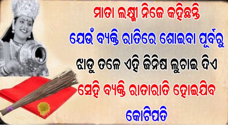 ଯେଉଁ ବ୍ୟକ୍ତି ରାତିରେ ଶୋଇବା ପୂର୍ବରୁ ଝାଡୁ ତଳେ ଏହି ଜିନିଷ ଲୁଚାଇ ଦିଏ ସେହି ବ୍ୟକ୍ତିକୁ ରାତାରାତି ମାତା ଲକ୍ଷ୍ମୀ କରି ଦିଅନ୍ତି କୋଟିପତି ।