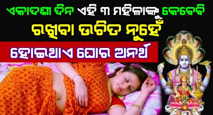 ଏକାଦଶୀ ବ୍ରତ କରିବାର ଅନେକ ମହତ୍ତ୍ୱ ରହିଛି । କିନ୍ତୁ ଆମ ଶାସ୍ତ୍ର ଅନୁଯାୟୀ ତିନି ଜଣ ମହିଳା ଏକାଦଶୀ ବ୍ରତ କରିବା ଉଚିତ ନୁହେଁ । କାରଣ ଏହାଦ୍ବାରା ଭଗବାନ ବିଷ୍ଣୁ ଏବଂ ମାତା ଲକ୍ଷ୍ମୀଙ୍କ କୃପା ମିଳିବା ବଦଳରେ ଅଭିଶାପ ମିଳିଥାଏ । ଏମିତିରେ ଏକାଦଶୀ ବ୍ରତ କରିବା ଜରୁରୀ ଅଟେ । କିନ୍ତୁ ଯଦି ଆପଣ ନିୟମ ମାନିବାରୁ ବଞ୍ଚିତ ହେଉଛନ୍ତି କିମ୍ବା ନିଷ୍ଠାର ସହିତ ବ୍ରତ ପାଳନ କରିପାରୁ ନାହାଁନ୍ତି ତେବେ ଏହି ବ୍ରତ ପାଳନ କରନ୍ତୁ ନାହିଁ । ନଚେତ ଭଗବାନ କ୍ରୋଧିତ ହେବେ ଏବଂ ଘରକୁ ଦାରିଦ୍ର୍ୟତା ସହିତ ଭିନ୍ନ ଭିନ୍ନ ସମସ୍ୟା ମଧ୍ୟ ଆସିବ । ତେଣୁ ଆଜିକାର ଏହି ଲେଖାରେ ଆମେ ସେହି ତିନି ଜଣ ମହିଳାଙ୍କ ବିଷୟରେ କହିବୁ ଏବଂ ଏହାବ୍ୟତୀତ ଏକାଦଶୀ ବ୍ରତର ନିୟମ ବିଷୟରେ ମଧ୍ୟ କହିବୁ ।