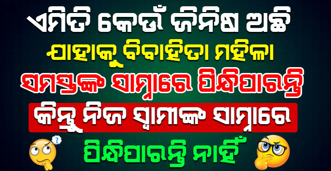 Interesting GK questions: ଏମିତି କେଉଁ ଜିନିଷ ରହିଛି ଯାହାକୁ ବିବାହିତା ସ୍ତ୍ରୀ ସମସ୍ତଙ୍କ ସାମ୍ନାରେ ପିନ୍ଧି ପାରିବ କିନ୍ତୁ ନିଜ ସ୍ଵାମୀ ସାମ୍ନାରେ ପିନ୍ଧି ପାରିବ ନାହିଁ ? ଏହା ସହ ଆହୁରି 19 GK Quiz