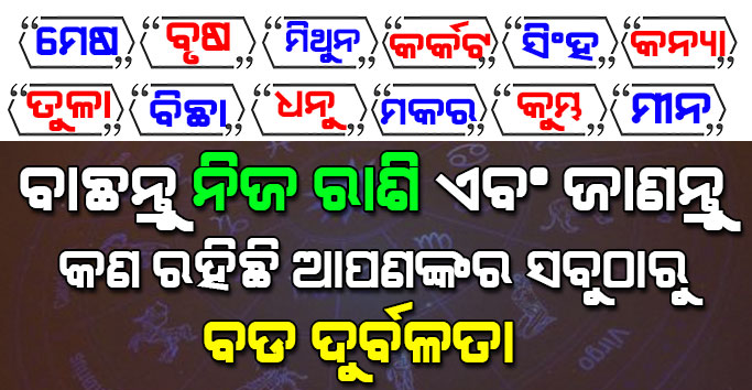 ବାଛନ୍ତୁ ନିଜର ରାଶି ଓ ଜାଣନ୍ତୁ କଣ ଅଟେ ଆପଣଙ୍କ ସବୁଠାରୁ ବଡ ଦୁର୍ବଳତା- Personality Test
