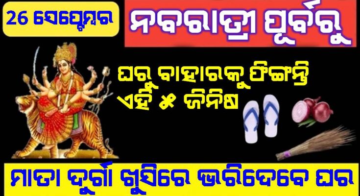 ଚଳିତ ବର୍ଷ ନବରାତ୍ରୀ ସେପ୍ଟେମ୍ବର ୨୬ ରୁ ଆରମ୍ଭ ହୋଇ ଅକ୍ଟୋବର ୫ ପର୍ଯ୍ୟନ୍ତ ପାଳିତ ହେବ । ଯାହାକି ନଅ ଦିନ ପର୍ଯ୍ୟନ୍ତ ଚାଲିବ । ତେବେ ଏହି ନଅ ଦିନ ମାତା ଦୁର୍ଗା ନିଜ ଭକ୍ତଙ୍କ ସହିତ ରହିବେ ଏବଂ ସେମାନଙ୍କର ସବୁ ମନସ୍କାମନା ପୁର୍ଣ୍ଣ କରିବେ । ମାତ୍ର ଏହିଦିନ ଗୁଡିକରେ କିଛି କଥା ପ୍ରତି ବିଶେଷ ଧ୍ୟାନ ଦେବା ଉଚିତ । କାରଣ ଘରେ କିଛି ଏପରି ଜିନିଷ ଥିଲେ ମା ଦୁର୍ଗାଙ୍କ ଆଗମନ ହେବ ନାହିଁ । ତେଣୁ ମା ଦୁର୍ଗା ଆସିବା ପୂର୍ବରୁ ଏହିସବୁ ଜିନିଷକୁ ହଟାଇ ଦେବା ଅତ୍ୟନ୍ତ ଜରୁରୀ ଅଟେ । ତେବେ ଚାଲନ୍ତୁ ସେହିସବୁ ଜିନିଷ ବିଷୟରେ ଜାଣିନେବା ।