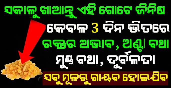 ତେବେ ଶରୀରରେ ବ୍ଲଡ଼ର ଅଭାବ ଦେଖାଯାଇଥାଏ । ଯଦି ହିମୋଗ୍ଲୋବିନର ଟେଷ୍ଟ ଦ୍ଵାରା ଆପଣଙ୍କ ଠାରେ ବ୍ଲଡ଼ର ଅଭାବ ଦେଖାଯାଇଥାଏ । ତେବେ ପ୍ରାକୃତିକ ଭାବେ ଶରୀରରେ ରକ୍ତର ମାତ୍ରାକୁ ବଢାଇବା ପାଇଁ ଏହି ଉପାୟ କରନ୍ତୁ । ଖିସମିସରେ ଆଇରନର ପରିମାଣ ଅଧିକ ରହିଥାଏ । ତେଣୁ ଖିସମିସ ଖାଇବା ଦ୍ଵାରା ଶରୀରରେ ରକ୍ତର ମାତ୍ରା ବୃଦ୍ଧି ପାଇଥାଏ । ଏହା ବ୍ଯତୀତ ଖିସମିସ ଦ୍ଵାରା ଆପଣ ଏଭଳି ଉପାୟ କରି ମଧ୍ୟ ତାହାର ସେବନ କରିପାରିବେ ।