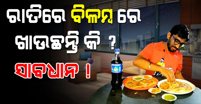 ନମସ୍କାର ବନ୍ଧୁଗଣ । କଣ ଆପଣ ମାନେ ରାତିରେ ଅଧିକ ଡେରି ରେ ଖାଦ୍ୟ ଖାଉଛନ୍ତି କି ? ଯଦି ଆପଣ ବିଳମ୍ବ ରାତିରେ ଖାଦ୍ୟ ଖାଉଛନ୍ତି ତେବ ହୋଇ ଯାଆନ୍ତୁ ଏବ ଠାରୁ ସାବଧାନ । ଯଦି ଆପଣ ରାତିରେ ଡେରି ରେ ଖାଉଛନ୍ତି ତେବେ ଆପଣଙ୍କର ସ୍ୱାସ୍ଥ୍ୟ ରେ ସମସ୍ଯା ଉପୁଜିପାରେ । ଅନେକ ଲୋକଙ୍କ କ୍ଷେତ୍ର ରେ ରାତି ରେ ଡେରି ରେ ଖାଦ୍ୟ ଖାଇବାର ଦେଖା ଯାଇଥାଏ । କାର୍ଯ୍ୟ ବ୍ୟସ୍ତ ହେଉ ବା ଅନ୍ୟ କୌଣସି କାରଣ ପାଇଁ ହେଉ ଯଦି ଆପଣ ଠିକ ସମୟରେ ଆହାର ବା ଖାଦ୍ୟ ଗ୍ରହଣ ନ କରିବେ ତେବେ ଏହା ଦ୍ଵାରା ଆପଣଙ୍କ ଶରୀରରେ ଅନେକ ପ୍ରକାରର ସମସ୍ଯା ସୃଷ୍ଟି ହେବାର ଆଶଙ୍କା ରହିଛି ।