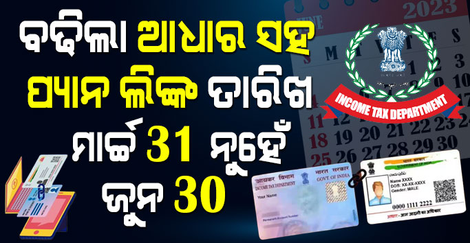 ଦର୍ଶକ ବନ୍ଧୁ ଆଉ ଆପଣଙ୍କୁ ଚିନ୍ତା କରିବାର ଆବଶ୍ୟକତା ନାହି । କାରଣ ସରକାର ଏବେ ଆପଣଙ୍କ ଚିନ୍ତା ଦୂର କରିବାକୁ ନେଇଛନ୍ତି ପଦକ୍ଷେପ । ଆଧାର ସହ ପ୍ୟାନ ଲିଙ୍କର ସମୟ ସୀମା ଆଉ କେତେ ଦିନ ବାକି ଥିବା ବେଳେ କେନ୍ଦ୍ର ସରକାର ଏବେ ସମୟ ସୀମାକୁ ପୁଣି ବଢାଇ ଦେଇଛନ୍ତି । ମାର୍ଚ୍ଚ 31 ବଦଳରେ ଆଧାର ସହ ପ୍ୟାନ ଲିଙ୍କର ସମୟ ସୀମା ଜୁନ 30 କୁ ବୃଦ୍ଧି କରାଯାଇଛି ।