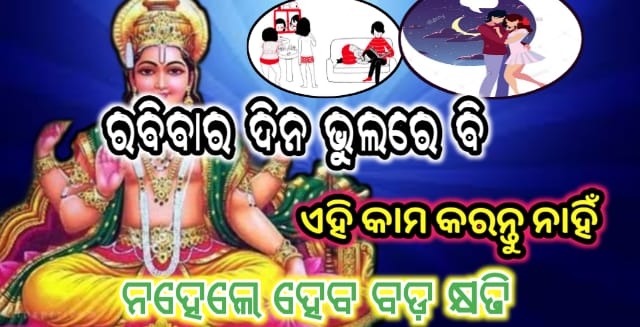 ରବିବାର ଦିନ କିଛି କାମ କରିବା ଉଚିତ ନୁହେଁ। ଏହି କାର୍ଯ୍ୟଗୁଡିକ କରିବା ଦ୍ୱାରା ସୂର୍ଯ୍ୟ ଗ୍ରହର ଖରାପ ପ୍ରଭାବର ସାମ୍ନା କରିବାକୁ ପଡିଥାଏ। ତେଣୁ ରବିବାର ଦିନ କିଛି ଜିନିଷ ଉପରେ ଧ୍ୟାନରେ ରଖିବା ଦ୍ୱାରା ସୂର୍ଯ୍ୟଦେବଙ୍କର ସର୍ବଦା ଆଶୀର୍ବାଦ ପ୍ରାପ୍ତ ହୋଇ ପାରିବ।