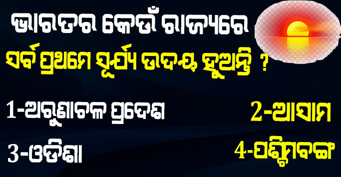 ଭାରତର କେଉଁ ରାଜ୍ୟ ରେ ସର୍ବ ପ୍ରଥମେ ସୂର୍ଯ୍ୟ ଉଦୟ ହୁଅନ୍ତି ? ଏହା ସହ ଜାଣନ୍ତୁ 15ଟି ପ୍ରଶ୍ନ ଓ ଏହାର ଉତ୍ତର