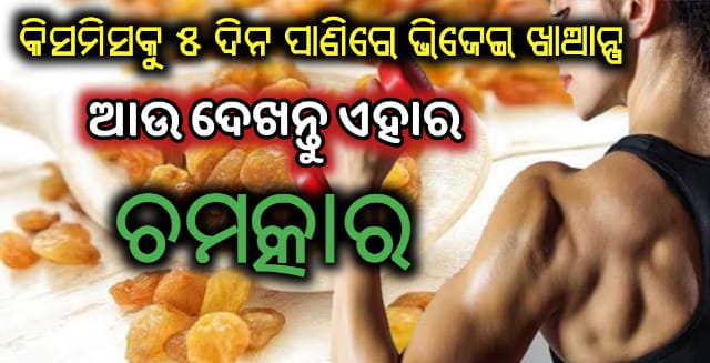 କିସମିସକୁ ୫ ଦିନ ପାଣିରେ ଭିଜାଇ ଖାଇଲେ ଆପଣଙ୍କ ଶରୀର ଉପରେ ଯାହା ପ୍ରଭାବ ପକାଇଥାଏ, ଆପଣ ଜାଣିଲେ ଆଶ୍ଚର୍ଯ୍ୟ ହୋଇଯିବେ ।
