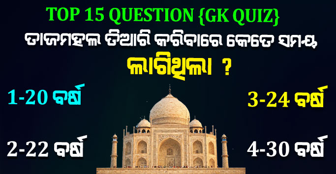 TOP 15 GK – ତାଜମହଲ ନିର୍ମାଣ କରିବା ପାଇଁ କେତେ ସମୟ ଲାଗିଥିଲା ? ଏହା ସହ 15ଟି ପ୍ରଶ୍ନ ଓ ଏହାର ଉତ୍ତର ।
