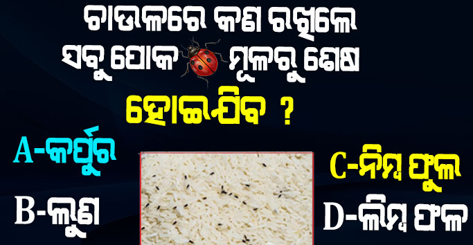 20+ GK QUIZ- ଚାଉଳ ଉପରେ କଣ ରଖିଲେ ସବୁ ପୋକ ମୂଳରୁ ଶେଷ ହୋଇଥାଏ ?