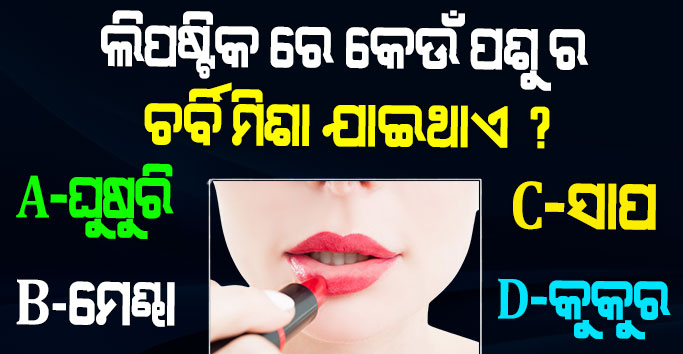 GK- ଲିପଷ୍ଟିକ ରେ କେଉଁ ପଶୁ ର ଚର୍ବି ମିଶା ଯାଇଥାଏ ? ଏହା ସହ ଜଣା ଅଜଣା ପ୍ରଶ୍ନ ଓ ଏହାର ଉତ୍ତର