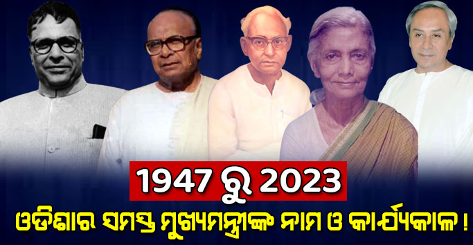 1947 ରୁ 2023 ପର୍ଯ୍ୟନ୍ତ ଓଡିଶାର ସମସ୍ତ ମୁଖ୍ୟମନ୍ତ୍ରୀଙ୍କ ନାମ ଓ କାର୍ଯ୍ୟକାଳ ! କିଏ ଥିଲେ ସବୁଠୁ ଭଲ ମୁଖ୍ୟମନ୍ତ୍ରୀ ?