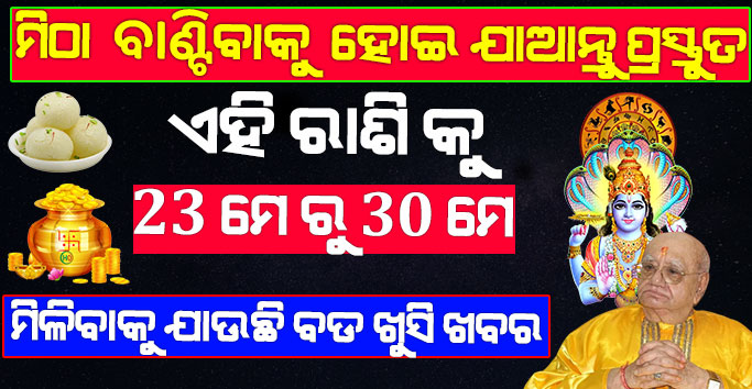 ମିଠା ବାଣ୍ଟିବାକୁ ହୋଇ ଯାଆନ୍ତୁ ପ୍ରସ୍ତୁତ, ଏହି ରାଶିକୁ ମେ 23 ରୁ 30 ପର୍ଯ୍ୟନ୍ତ ମିଳିବ ବଡ ଖୁସି ଖବର