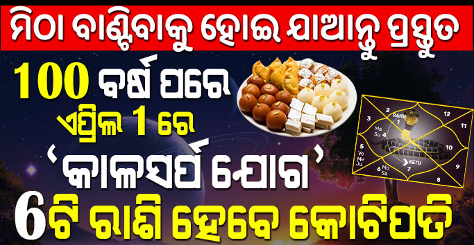 ମିଠା ବାଣ୍ଟିବାକୁ ହୋଇ ଯାଆନ୍ତୁ ପ୍ରସ୍ତୁତ 100 ବର୍ଷ ପରେ ଏପ୍ରିଲ 1ରେ କାଳସର୍ପ ଯୋଗ 6ଟି ରାଶି ହେବେ କୋଟିପତି