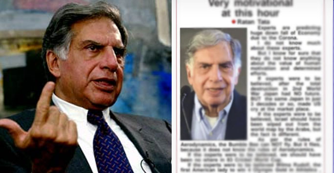 ଟାଟା କମ୍ପାନୀର ପୂର୍ବ ଚେୟାରମ୍ୟାନ ରତନ ଟାଟାଙ୍କୁ ଆଜି ପୁରା ଦେଶ ଚିହ୍ନିଛନ୍ତି । କାରଣ ସେ ବହୁତ ବଡ ବିଜନେସମ୍ୟାନ ସହ ଓ ବହୁତ ଦୟାବାନ ବ୍ୟକ୍ତିତ୍ଵ ଅଟନ୍ତି । ଏହା ସହିତ ସେ ସୋସିଆଲ ମିଡିଆରେ ବି ଦେଶର ବିଭିନ୍ନ ମୁଦ୍ଦା ଉପରେ ନିଜର ରାୟ ରଖିଥାନ୍ତି । କିନ୍ତୁ ବର୍ତ୍ତମାନ ଦିନରେ ତାଙ୍କର ନାମକୁ ବ୍ୟବହାର କରି କରୋନା ଭାଇରସ ସମ୍ବନ୍ଧିତ ଏକ ପୋସ୍ଟ ସୋସିଆଲ ମିଡିଆରେ ବହୁତ ଭାଇରାଲ ହେଉଛି ।