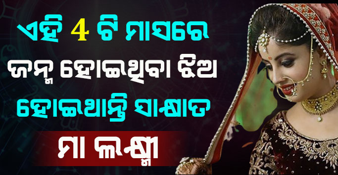 କେଉଁ ମାସରେ ଝିଅ ଜନ୍ମ ହୋଇଥିଲେ ଲକ୍ଷ୍ମୀମନ୍ତ ହୋଇଥାନ୍ତି । ହଁ ଆଜ୍ଞା ଝିଅ ମାନଙ୍କୁ ଘରର ଲକ୍ଷ୍ମୀ ବୋଲି ମାନାଯାଇଥାଏ । କାରଣ ଘରେ ଯେତେବେଳେ ଗୋଟେ ଝିଅ ଜନ୍ମ ହୋଇଥାଏ । ସେତେବେଳେ ଘରକୁ ଲକ୍ଷ୍ମୀ ଆସିଲେ ବୋଲି ଆମେ ମାନେ କହିଥାଉ । ତେବେ ଆଜି ଆମେ ଜାଣିବା । ଯେ କେଉଁ ଆସରେ ଝିଅ ମାନେ ଜନ୍ମ ହୋଇଥିଲେ ସେମାନେ ଲକ୍ଷ୍ମୀମନ୍ତ ସ୍ଵଭାବର ହୋଇଥାନ୍ତି ।