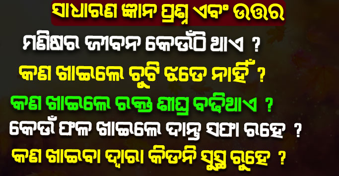 ପ୍ରଶ୍ନ – ମଣିଷର ଜୀବନ କେଉଁଠି ଥାଏ ? କଣ ଖାଇଲେ ଚୁଟି ଝଡେ ନାହିଁ ? 15+ GK With Answers