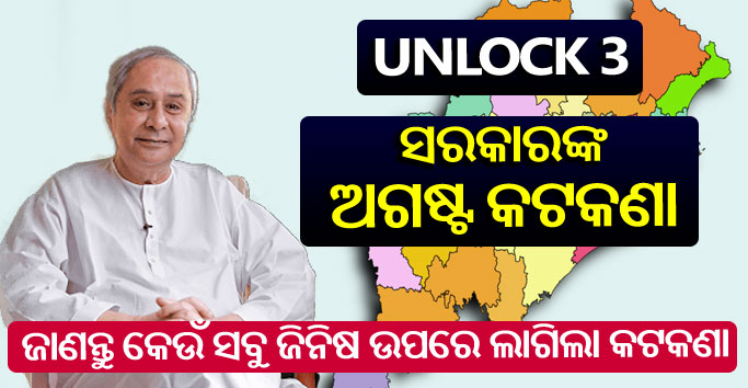 ରାଜ୍ୟରେ ଦିନକୁ ଦିନ କରୋନା ମାମଲା ବଢିବାରେ ଲାଗିଛି । ଅନେକ କଟକଣା ସତ୍ବେ ବି ସ୍ଥିତି ନିୟନ୍ତ୍ରଣ ବାହାରକୁ ଯାଉଛି । ଯେଉଁ କାରଣରୁ ସରକାର ନୂଆ ନୂଆ ଗାଇଡ ଲାଇନ ଆପଣାଇବାକୁ ବାଧ୍ୟ ହେଉଛନ୍ତି । ରାଜ୍ୟ ସରକାରଙ୍କ ତରଫରୁ ବର୍ତ୍ତମାନ unlock 3 ମାନେ ଅଗଷ୍ଟ ମାସର ନୂଆ ଗାଇଡ ଲାଇନ ଜାରି କରାଯାଇଛି । ରାଜ୍ୟରେ ବର୍ତ୍ତମାନ ର କରୋନା ସ୍ଥିତିକୁ ଆଖି ଆଗରେ ରଖି ନୂଆ ନୂଆ ଗାଇଡ ଲାଇନ ପ୍ରସ୍ତୁତ କରା ଯାଇଛି । ତେବେ ଚାଲନ୍ତୁ ଜାଣିବା ସେହି ଗାଇଡ ଲାଇନ ବିଷୟରେ ।