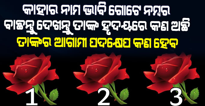 ବନ୍ଧୁଗଣ ମଣିଷ ଜୀବନରେ ଆଗକୁ ବଢିବାକୁ ହେଲେ ଜ୍ଞାନର ଆବଶ୍ୟକତା ପଡିଥାଏ । ମଣିଷ ଜୀବନରେ ଆଗକୁ ବଢିବା ପାଇଁ କିଛି ନା କିଛି ନିସ୍ପତି ନେଇଥାଏ । ଯାହା ଅନେକ ସମୟରେ ଠିକ ହୋଇଥାଏ ତ ଭୁଲ ମଧ୍ୟ ହୋଇଥାଏ । ତେବେ ମଣିଷ ଜୀବନରେ ଯାହାକୁ ଭଲ ପାଇଥାଏ ତାଙ୍କ ମନରେ କଣ ଚାଲିଛି ତାହା ଜାଣିବାକୁ ମଧ୍ୟ ଇଚ୍ଛା ଥାଏ । ତେବେ ଆଜି ଆମେ ଆପଣଙ୍କ ପାଇଁ ନେଇ ଆସିଛୁ 3ଟି ଗୋଲାପ ର ଚିତ୍ର । 3ଟି ଗୋଲାପ ରୁ ଆପଣ କୌଣସି ଗୋଟେ ବାଛି ନିଅନ୍ତୁ । ଆଉ ଜାଣନ୍ତୁ ତାଙ୍କ ମନରେ କଣ ଅଛି ଓ ଆଗାମୀ ସ୍ଟେପ ତାଙ୍କର କଣ ହେବ ।