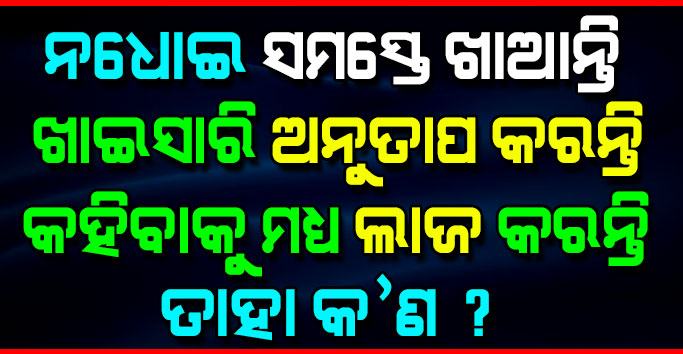 Odia Gk Questions- ନଧୋଇ ସମସ୍ତେ ଖାଆନ୍ତି, ଖାଇସାରି ଅନୁତାପ କରନ୍ତି, କହିବାକୁ ମଧ୍ୟ ଲାଜ କରନ୍ତି, କୁହନ୍ତୁ ତାହା କ’ଣ ?