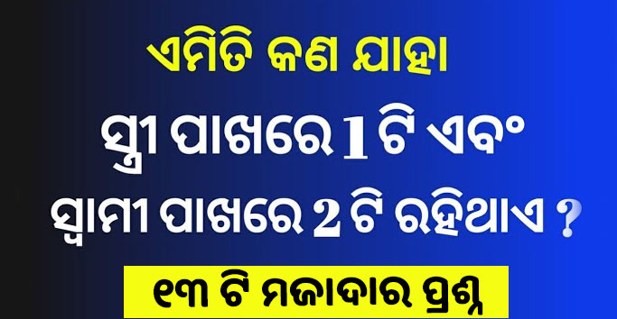 ୧୩. ଏମିତି କଣ ଯାହା ସ୍ତ୍ରୀ ପାଖରେ 1 ଟି ଓ ସ୍ଵାମୀ ପାଖରେ 2 ଟି ଅଛି ?