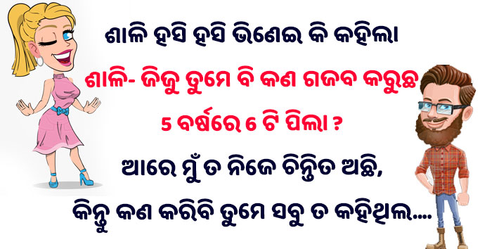 ଓଡିଆ ଜୋକ୍ସ: ଶାଳି ହସି ହସି ଭିଣେଇ କି କହିଲା, ଶାଳି- ଜିଜୁ ତୁମେ ବି କଣ ଗଜବ କରୁଛ 5 ବର୍ଷରେ 6 ଟି ପିଲା ? ଭିଣେଇ- ତୁମେ ସବୁ ତ କହିଥିଲ…