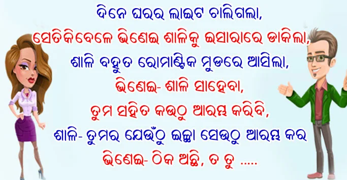 ଓଡିଆ ଜୋକ୍ସ: ଦିନେ ଘରର ଲାଇଟ ଚାଲିଗଲା, ସେତିକିବେଳେ ଭିଣେଇ ଶାଳିକୁ ଇସାରାରେ ଡାକିଲା ଓ କହିଲା ଶାଳି ସାହେବା, ତୁମ ସହିତ କଉଠୁ ଆରମ୍ଭ କରିବି….