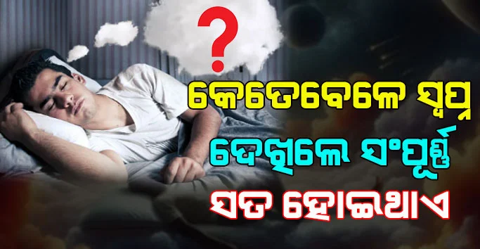 ବନ୍ଧୁଗଣ ଶୋଇଥିବା ଅବସ୍ଥାରେ ସମସ୍ତେ ଅନେକ ସମୟରେ ସ୍ଵପ୍ନ ଦେଖିଥାନ୍ତି । ସ୍ଵପ୍ନରେ ଆମେ ବହୁତ କିଛି ଦେଖିବାକୁ ପାଇଥାଉ । କିଛି ସ୍ଵପ୍ନ ଆମର ସତ ହେଉଥିବା ବେଳେ କିଛି ସ୍ଵପ୍ନ ଆମର ସେହି ସ୍ଵପ୍ନ ହୋଇ ହିଁ ରହିଜାଇଥାଏ । ତେବେ ବନ୍ଧୁଗଣ ଆପଣ କ’ଣ ଜାଣିଛନ୍ତି ! ଯେ ସ୍ଵପ୍ନ କେଉଁ ସମୟରେ ଦେଖିଲେ ତାହା ସତ ହୋଇଯାଇଥାଏ । ତେବେ କେତେବେଳେ ସ୍ଵପ୍ନ ଦେଖିଲେ । ସେହି ସ୍ଵପ୍ନଟି ସତ ହୋଇଯାଇଥାଏ ଆସନ୍ତୁ ସେ ସମ୍ପର୍କରେ ଏଠାରେ ଜାଣିବା ।