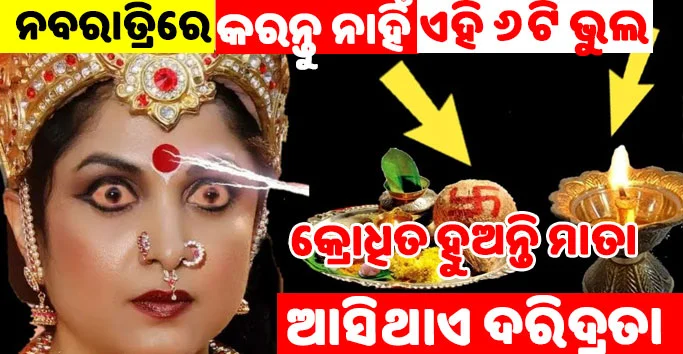ଆମେ ସମସ୍ତେ ଜାଣିଛୁ କି ନବରାତ୍ରି ରେ କଣ କଣ କରିବା ଦ୍ଵାରା ମା ଆମ ଉପରେ ପ୍ରସନ୍ନ ହୋଇଯିବେ ଓ ଆମ ଉପରେ କୃପା କରି ଆମେ ମନଇଚ୍ଛା ଫଳ ପ୍ରାପ୍ତ କରିପାରିବୁ । ଯାହାକୁ ତ ଆମେ କରିଥାଉ । କିନ୍ତୁ କଣ ଆପଣ ଜାଣିଛନ୍ତି କି ଆପଣଙ୍କର କେଉଁ କେଉଁ ଭୁଲ ପାଇଁ ମା ଆପଣଙ୍କ ଉପରେ ରୁଷ୍ଟ ହୋଇ ପାରନ୍ତି ଓ ଆମକୁ ତାଙ୍କର କ୍ରୋଧର ସାମ୍ନା କରିବାକୁ ପଡିପାରେ । ତେବେ ଆଜି ଆମେ ଆପଣଙ୍କୁ କହିବୁ କି ନବରାତ୍ରିରେ ଆମକୁ କେଉଁ କେଉଁ ଭୁଲ କରିବା ଉଚିତ ନୁହେଁ ।