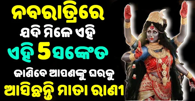 ଯଦି ନବରାତ୍ରିରେ ଆପଣଙ୍କୁ ଦେଖାଯାଉଛି ଏହି ପାଞ୍ଚଟି ସଙ୍କେତ ତା ହେଲେ ଜାଣି ନିଅନ୍ତୁ ଆପଣଙ୍କ ଘରେ ମା ଦୂର୍ଗାଙ୍କ ପ୍ରବେଶ ହେଇ ସାରିଲାଣି । ଶାସ୍ତ୍ର ଅନୁସାରେ କହୁଯାଇଛି ନବରାତ୍ରି ସମୟରେ ଯଦି କୌଣସି ବ୍ୟକ୍ତିଙ୍କୁ ତଳେ ଦିଆ ଯାଇଥିବା ପାଞ୍ଚଟି ସଙ୍କେତ କିମ୍ବା ଏହା ଭିତରୁ କୌଣସି ଗୋଟିଏ ସଙ୍କେତ ଦେଖ ଦିଏ ତେବେ ଜାଣିନିଅନ୍ତୁ ଘର ପରିବାରରେ କିମ୍ବା ସେହି ମଣିଷ ଜୀବନରେ ମା ଦୂର୍ଗାଙ୍କର ଆଶୀର୍ବାଦ ପଡି ସାରିଲାଣି ବା ମା ଦୁର୍ଗା ଘରେ ପ୍ରବେଶ କରିସାରିଲେଣି । ତେବେ ଆସନ୍ତୁ ଜାଣିବା କଣ ସେହି ପାଞ୍ଚଟି ସଂକେତ ।