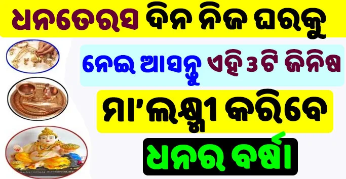 ଯଦି ଆପଣ ଧନତେରସ ଦିନ ଏହି 3 ଟି ଜିନିଷକୁ କିଣି କରି ଘରକୁ ଆଣନ୍ତି ତେବେ ବନ୍ଧୁଗଣ ମାତା ଲକ୍ଷ୍ମୀ ଆପଣଙ୍କ ଘରର ଦରିଦ୍ରତା ଛୁ ମନ୍ତର କରି ଦେଇଥାନ୍ତି । ତେବେ ବନ୍ଧୁଗଣ ଚାଲନ୍ତୁ ଜାଣିବା ସେହି 3 ଟି ଜିନିଷ କଣ ଯାହାକୁ ଧନତେରସ ଦିନ ଘରକୁ କିଣି ଆଣିବା ଦ୍ଵାରା ଦରିଦ୍ରତା ଦୂର ହୋଇଯାଏ ।