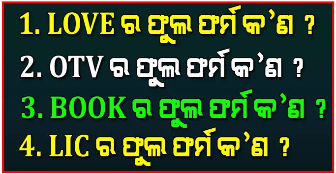 Interesting Gk Questions- ଲଭ ର ଫୁଲ ଫର୍ମ କଣ ? Book ର ଫୁଲ ଫର୍ମ କଣ ? ଏହା ସହିତ ଜାଣନ୍ତୁ ଆହୁରି 20 ଟି ଫୁଲ ଫର୍ମ