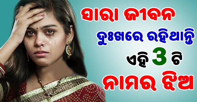 ବନ୍ଧୁଗଣ ଆଜି ଆମେ ଆପଣଙ୍କୁ ଏମିତି 3 ଟି ନାମର ଝିଅଙ୍କ ବିଷୟରେ କହିବାକୁ ଯାଉଛୁ ଯିଏ କି ସାରା ଜୀବନ ଦୁଃଖୀ ରହିଥାନ୍ତି । ବନ୍ଧୁଗଣ ଏହି ଜୀବନ ଏକ ରଙ୍ଗ ମଞ୍ଚ ଅଟେ ଯେଉଁଠି ସର୍ବଦା ସୁଖ ଓ ଦୁଃଖ ଲାଗି ରହିଥାଏ । ସୁଖ ଦୁଃଖ ମଣିଷର ଅନୁଭୂତି ର ହିଁ ପରିଣାମ ହୋଇଥାଏ । ବନ୍ଧୁଗଣ ଖରାପ ସମୟରେ ବ୍ୟକ୍ତି ଏତେ ଅସହଯତା ଅନୁଭବ କରିଥାଏ କି ସେ ନିଜର ଦୁଃଖ କହି ବାଣ୍ଟିବାକୁ ଚାହିଁଥାଏ । ଏଥିପାଇଁ କେବଳ ନିଜ ଲୋକମାନଙ୍କ ମଧ୍ୟରେ ହିଁ ନିଜ ଦୁଖ କଷ୍ଟ ବାଣ୍ଟିବା ଆବଶ୍ୟକ ।