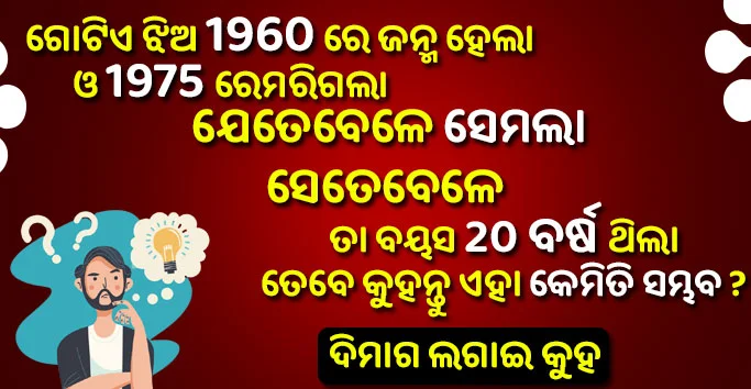 Interesting Gk Questions- ଗୋଟିଏ ଝିଅ 1960 ରେ ଜନ୍ମ ହେଲା ଓ 1975 ରେ ସେମ -ରିଗଲା, ଯେତେବେଳେ ସେ -ଲା ସେତେବେଳେ ତା ବୟସ 20 ବର୍ଷ ଥିଲା, କୁହନ୍ତୁ ଏହା କେମିତି ସମ୍ଭବ ?