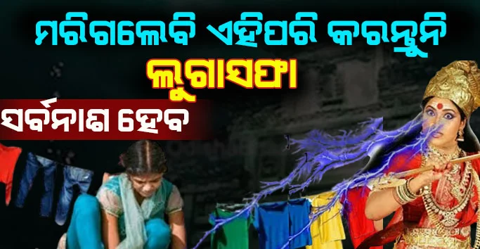 ଏଭଳି ଢଙ୍ଗରେ ଭୁଲରେ ବି କରନ୍ତୁନି ଲୁଗାସଫା ! ମନୁଷ୍ୟ ଜୀବନର ପ୍ରତ୍ଯେକଟି କାର୍ଯ୍ୟର ଶୁଭ କିମ୍ବା ଅଶୁଭ ଫଳ ରହିଥାଏ । ଯଦି ବ୍ୟକ୍ତି ଭଲ କାର୍ଯ୍ୟ କରିଥାଏ । ତେବେ ସେଥିରୁ ଭଲ ଫଳ ମିଳିଥାଏ । ଯଦି ବ୍ୟକ୍ତି ଖରାପ କାର୍ଯ୍ୟ କରିଥାଏ । ତେବେ ସେଥିରୁ ଖରାପ ଫଳ ମିଳିଥାଏ । ତେବେ ଆପଣ ଧାରଣ କରୁଥିବା କପଡା ଠାରୁ ଆରମ୍ଭ କରି କପଡା ସଫା ପର୍ଯ୍ୟନ୍ତ ଯେଉଁ ସବୁ କାର୍ଯ୍ୟ ରହିଥାଏ । ତାହାକୁ ଜଡିତ ଭଲ କି ଖରାପ ପରିଣାମ ଆପଣଙ୍କୁ ମଧ୍ୟ ମିଳିଥାଏ । ତେଣୁ କପଡା ସହ ଜଡିତ କାର୍ଯ୍ୟ କରିବା ବେଳେ ଏହି ସବୁ ଭୁଲ କରିବାରୁ ବଞ୍ଚିକି ରୁହନ୍ତୁ ।
