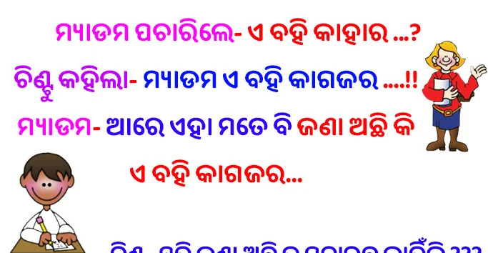 Odia Jokes- ମ୍ୟାଡମ ପଚାରିଲେ- ଏ ବହି କାହାର …? ଚିଣ୍ଟୁ କହିଲା- ମ୍ୟାଡମ ଏ ବହି କାଗଜର ….!! ମ୍ୟାଡମ- ଆରେ ଏହା ମତେ ବି ଜଣା ଅଛି କି…